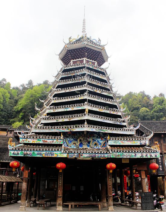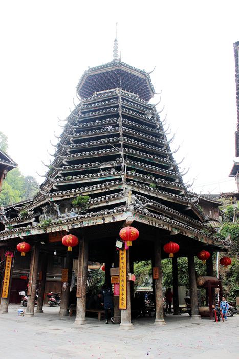 信团鼓楼始于18世纪 是肇兴侗寨最高的鼓楼