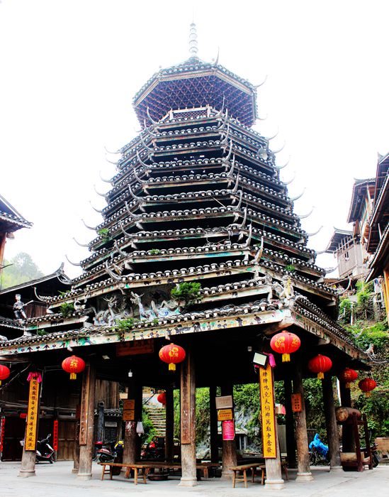 肇兴侗寨里的文化鼓楼 这是礼团鼓楼
