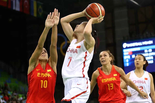 中国女篮队员在国际大赛中敢做动作突破上篮