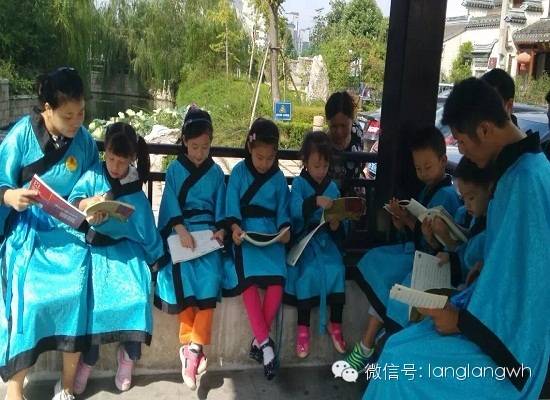 看,琅琅的读书郎们两耳不闻身边事。尽管有路人驻足观看,但是小朋友们依旧认真诵读哦!