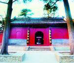 香界寺香界寺位于平坡山,是现今八大处面积最大的一座寺庙。始建于唐乾元年间(758-760年),名为"平坡大觉寺",明朝名为"大圆通寺",清康熙年间名为"圣感寺",清乾隆年间改为现名。香界寺坐北朝南,依山取势,气势雄伟壮观,是历代帝王游山驻跸之所。寺分左、中、右三路,共五进院落。中路行进,山门殿上方悬一石额,上镌"敕建香界寺",二进院落内古松虬枝盘旋,张牙舞爪,故称"龙松"。另有钟鼓二楼分列左右。后为天王殿,面阔三间,内供四大天王,契比和尚(大肚弥勒佛)和韦驮。拾阶而上有正殿五间,名圆雄宝殿,殿前有石碑两通。其中左碑碑阳刻有"大悲菩萨自传真像",相传为康熙年间重修寺庙时出土的唐代古碑。碑阴刻有"敬佛"二字,大如洪斗,为康熙御笔。四进院落格局与三进相仿,正殿为大雄宝殿,供三世佛与十八罗汉。五进院落为藏经楼。左路为一别院,仅精舍三间。右路为"行宫院",为乾隆帝避暑的行宫,院内置景颇佳。
