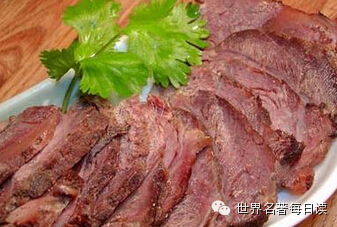 3、拿出牛腱,放到冰箱冷藏室。待牛腱冷却收硬后,再将它切成薄片。