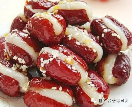 5、白糖加水和淀粉放入锅里用小火溶成糖浆,淋到红枣上即可。