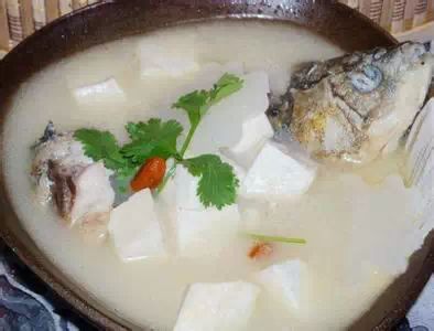 主料:鲫鱼1条、豆腐1块、色拉油适量、食盐1茶匙、鸡精1/2茶匙、葱1段、姜3片、胡椒粉适量、黄酒1汤匙
