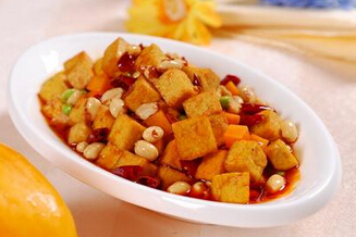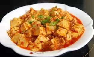 主料:北豆腐500克、牛肉150克、酱油30毫升、鸡精3克、花椒粉5克、豆瓣辣酱40克、豆豉20克、辣椒粉5克、青蒜50克