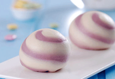 紫薯蒸熟后过筛,加入面粉揉成光滑的面团,发酵至1.5倍大。在揉一个白色面团,发酵至1.5倍大。将紫色面团和白色面团分别擀成长方形,紫色面团在下,白色面团在上,卷成卷,卷紧。然后切成1厘米宽的圆片,切口朝上。