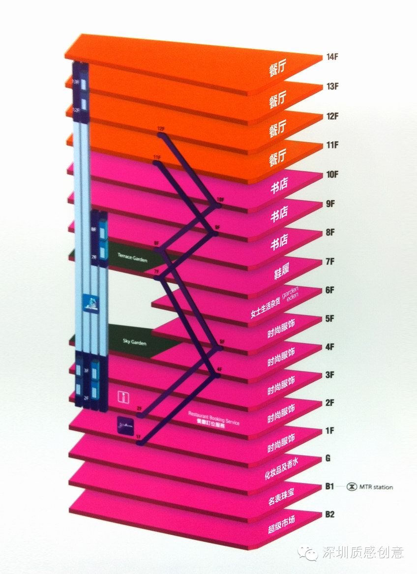 而Hysan Place单层面积不足2400㎡,却高达17层,这个“立体”的购物中心用什么办法吸引人、留住人?