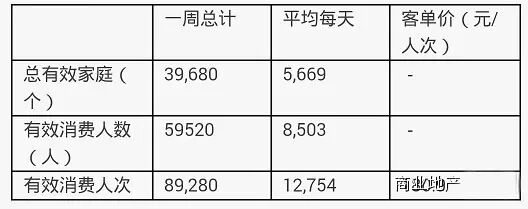 5)根据客流量支撑推算得出:日均12754人次消费,人均次消费180.9元,月营业额6459.5万元。