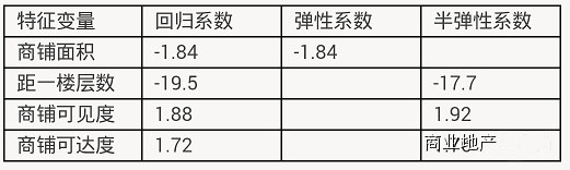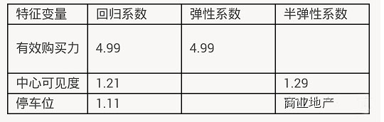 表3:区位特征对商铺价格影响的价格弹性/半弹性