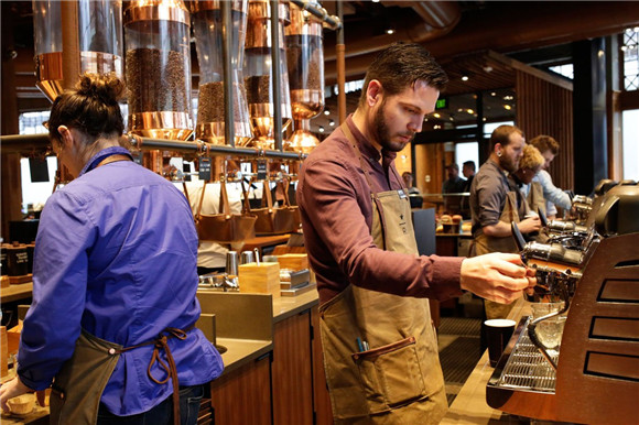 12月5日,星巴克第一家臻选咖啡(Reserve)烘焙体验馆在西雅图国会山附近开业。在这里,顾客可以看到原装咖啡豆从拆封、烘焙到做成咖啡的全过程。