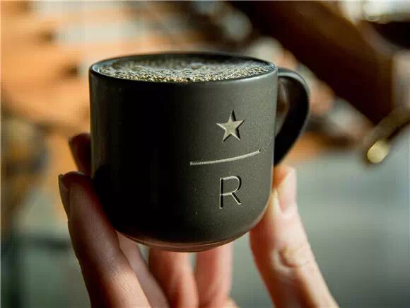 你可能会觉得奇怪的是,在这家烘焙体验馆,竟然看不到星巴克绿色的美人鱼标志,取而代之的是这个R和星星标志。因为这里其实是星巴克臻选咖啡专属的烘焙体验馆。