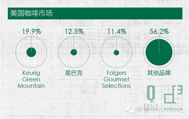除了资本市场,星巴克的压力也来自于同行。根据IRI Beverage Industry Magazine的数据,2014年全美十大咖啡销量第一的是Keurig Green Mountain,占咖啡市场份额19.9%,星巴克居第二占比12.5% ,第三名是Folgers Gourmet Selections的11.4%。另外,虽然如Costa这样咖啡品牌还无法对星巴克构成威胁,但同行的入局总会牵涉到利益的分割。