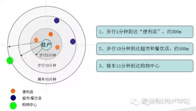 2、在考虑客户需求的基础上,需在2公里的客户消费半径内研究已有的商业布置,以确定社区的具体商业职能。
