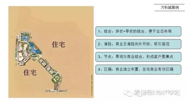 2、深圳万科城采用集中商业和商业街的规划模式,并集中布置,对小区外开放,是城花系列商业的成功案例。