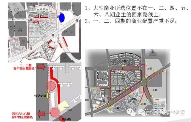 2、业态组合方面建议,建议重新考虑商业面积的分配,当前在各期内设立小型超市和菜市场,后期配合集中商业设置大型超市。