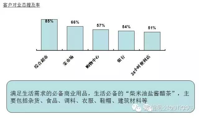 (1)“满足基本生活”类主要业态包括综合超市、菜市场、购物中心和银行,基本满足客户的日常购物需求。