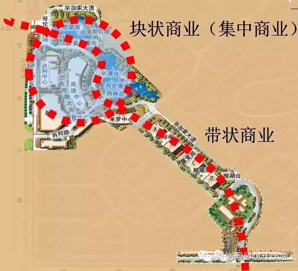 3、块状商业有利于加强商家的集聚功能,让客户感受到“场域效应” ;条状商业便于布置商业街,将购物与休闲结合在一起。