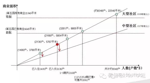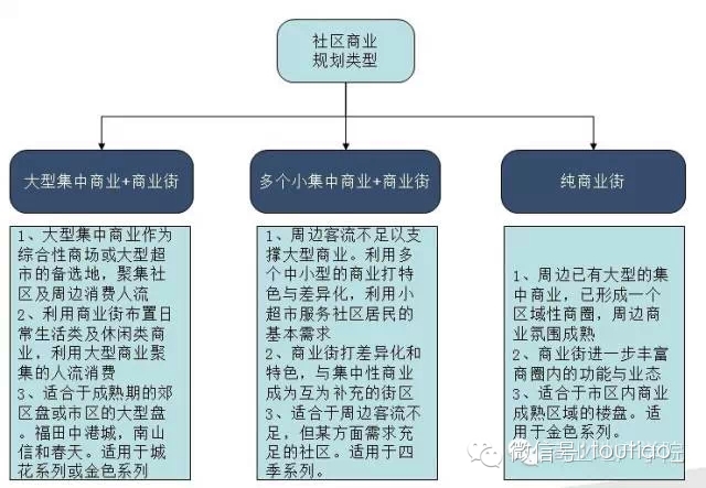 1、根据住宅的开发阶段合理安排商业业态和商业体量是社区商业成功的关键;郊区大型楼盘需配备0.9平米/人商业。
