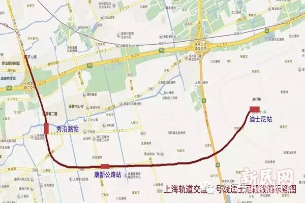 据介绍,11号线迪士尼段北接11号线终点站罗山路站,之后向南沿S3公路(罗南大道)的东侧行至秀浦路,转向沿秀浦路往东直至迪士尼乐园。线路全长约9.15公里,其中高架线约7.39公里,敞开段约0.3公里,地下线约1.46公里,设站3座,分别为秀沿路站、康新公路站、迪士尼站。