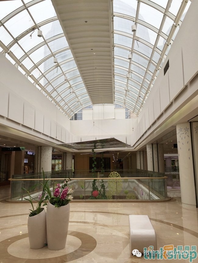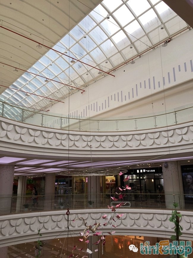 繁花中心是一个标准的大盒子式建筑商业,经营方为了追求街区式商业与自然融合的效果,在规划设计之初,就利用多个区域的玻璃顶棚来实现自然采光。自然采光比二次光源照明更能给人愉悦感和亲切感。