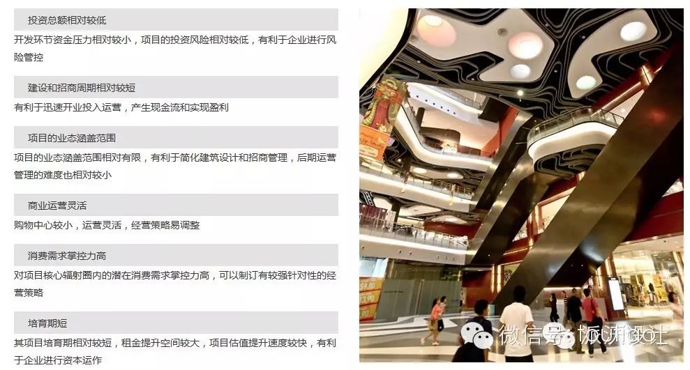 微型购物中心在运营管理以及规划设计上有其独特的优势,新加坡Iluma购物中心是微型购物中心的典型代表。其商业面积仅为2.6万平方米,却很好满足了当地居民以及旅游消费者,60%的娱乐场所充分体现了其“城市娱乐中心”的主题定位。