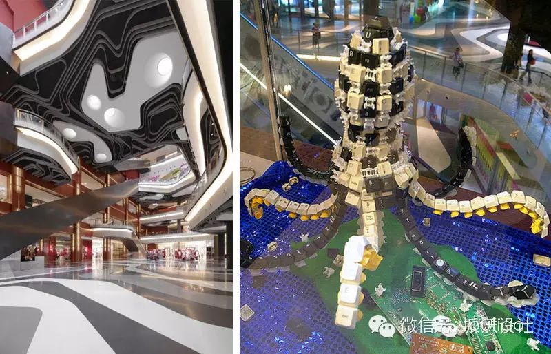 雕塑造型建筑元素内沿漫步道容纳一些比较小型的零售和娱乐活动;
