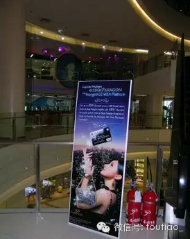 广告在通道处设置塑框广告,不仅可以使购物中心显得更加醒目,更加具有吸引力,同时也是购物中心内商品的最佳展示店,可以合理的分配购物中心广告的空间,提高购物中心的经济效益。