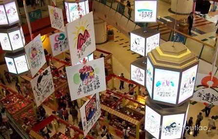 悬挂式pop广告是在香港购物中心用量较大、使用效率最高的一种。从展示的方式来看,其除能对顶部及上部空间直接利用外,还可以向下部空间作适当延伸利用。例如,香港青衣城内的悬挂式pop广告。
