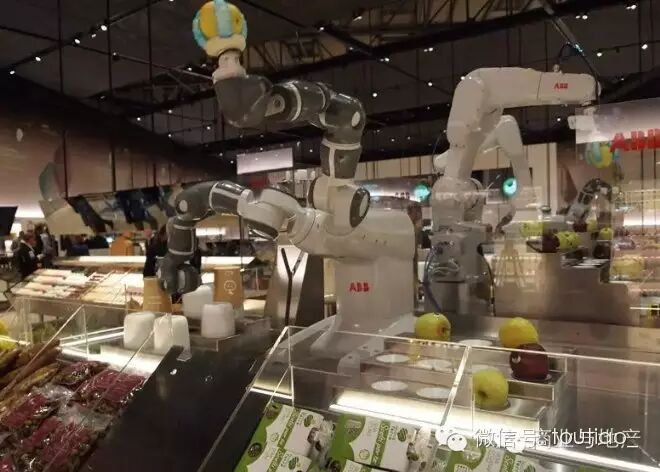 ▲这些机械手臂在现场的重要作用就是展示:拿起一颗苹果或是一个杯子,然后放下。在传统超市里,这些工作都是由人来完成,而在这间未来超市里,人的作用已经被机器、数据替代。这当然会省力不少,而且对听烦了商超里满场吆喝的顾客来说,可能会是一个非常安心舒适的购物环境。