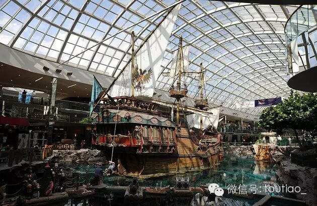 加拿大阿尔伯塔的西埃德蒙顿(West Edmonton)商场是北美最大的购物商场,里面有海盗船、射击场以及水上公园。