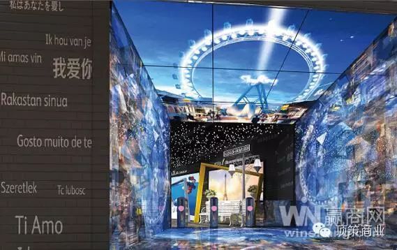 除了摩天轮外,8层的导引区也十分炫酷。入口将以万花筒结构为造型,左右两侧缀以菱形立体物以展现空间之美,加之灯光魔幻效果,使得消费者走入其中便如同穿越时空。另外,导引区还设有异国摄影区、魔镜等互动设备,来吸引消费者。