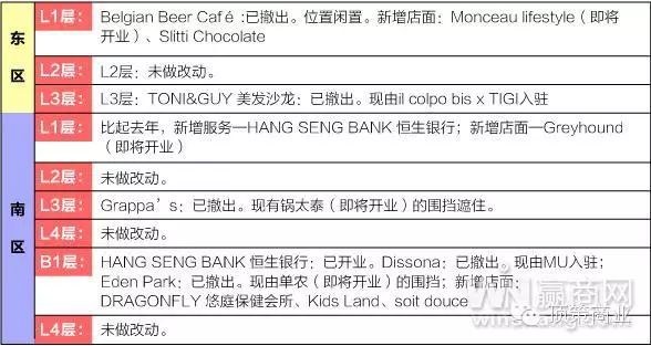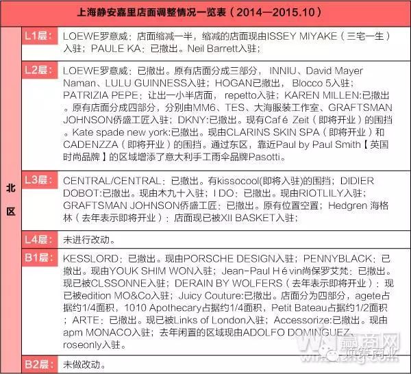 品牌调整主要集中北区负一层