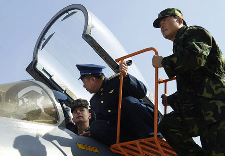 美参谋长联席会议主席佩斯上将坐进解放军的苏-27战斗机