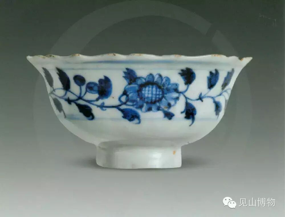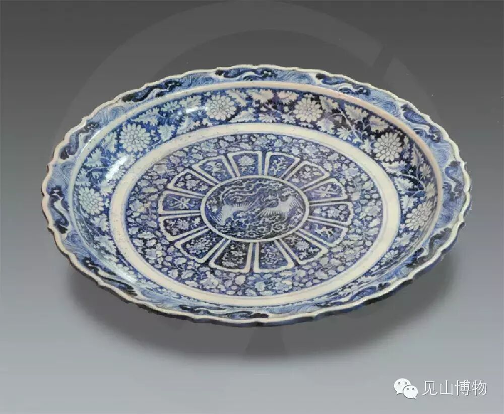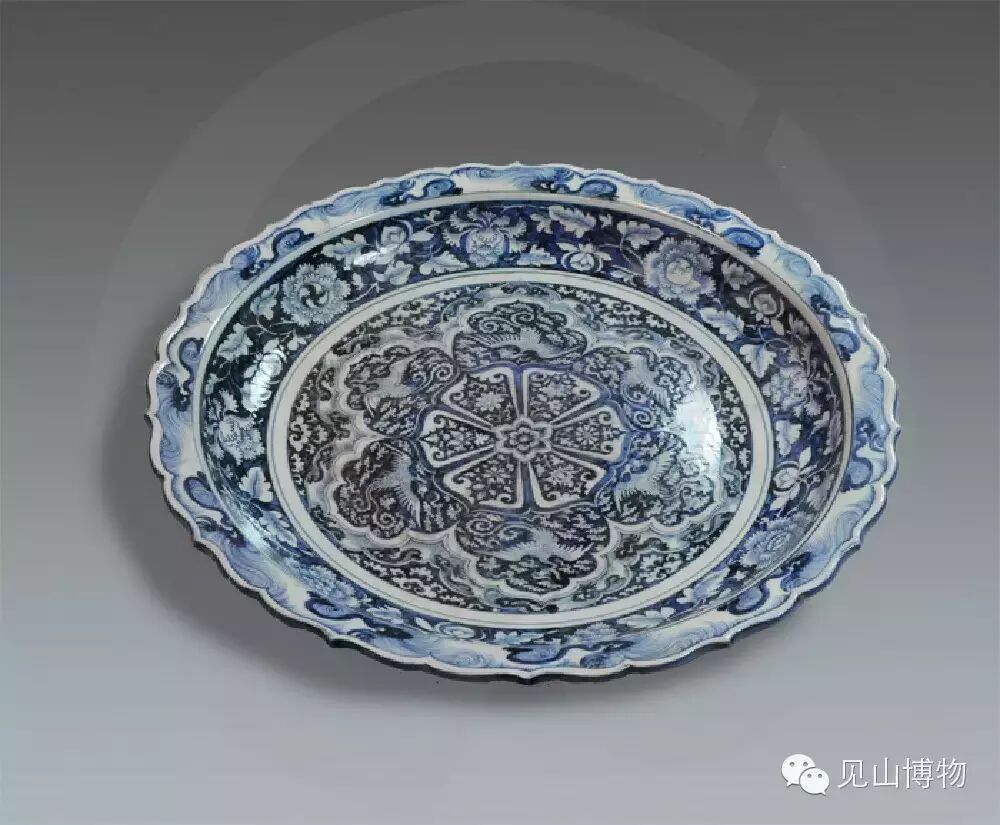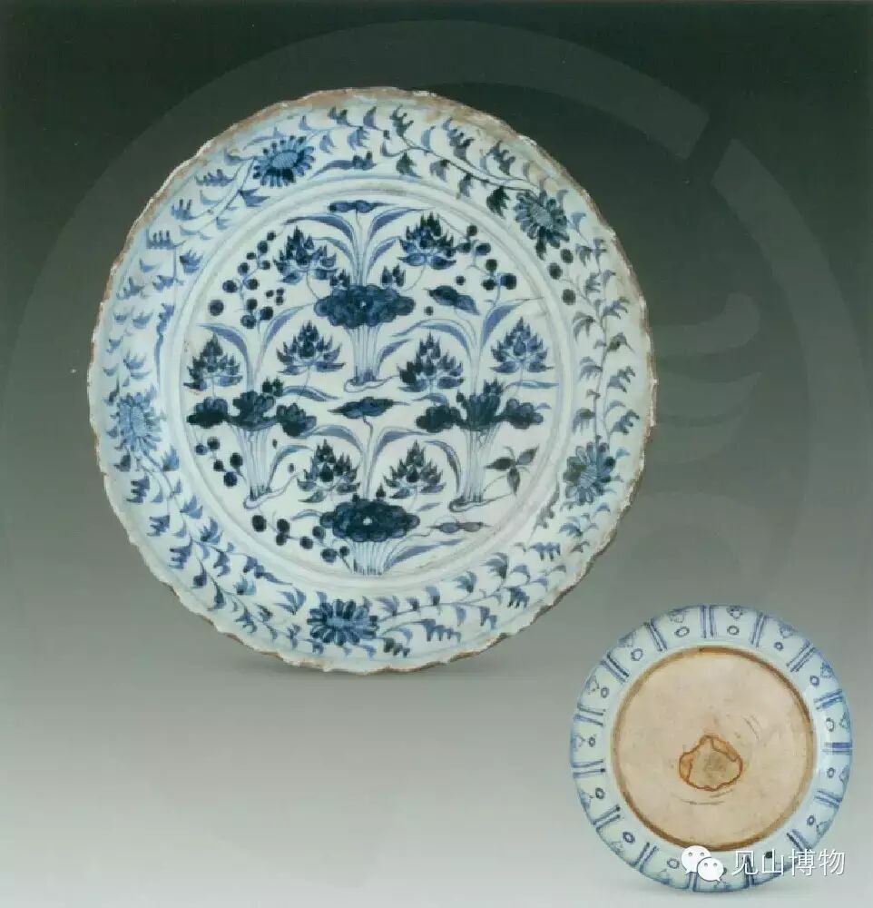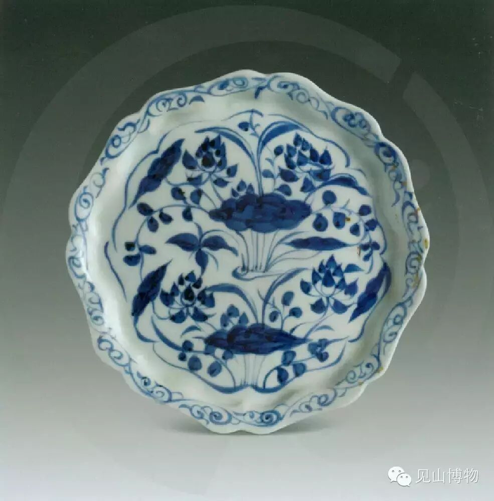 青花荷莲纹葵瓣口盘