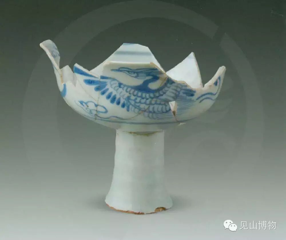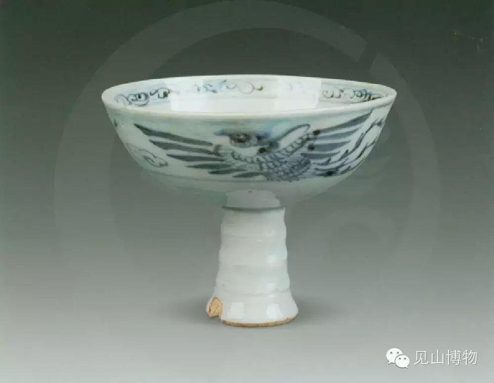 青花飞凤纹高足杯