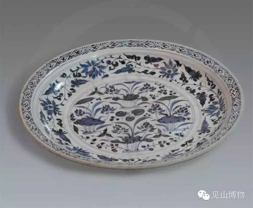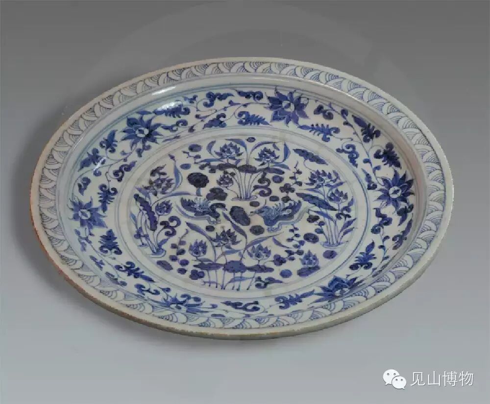 青花莲池纹圆口大盘
