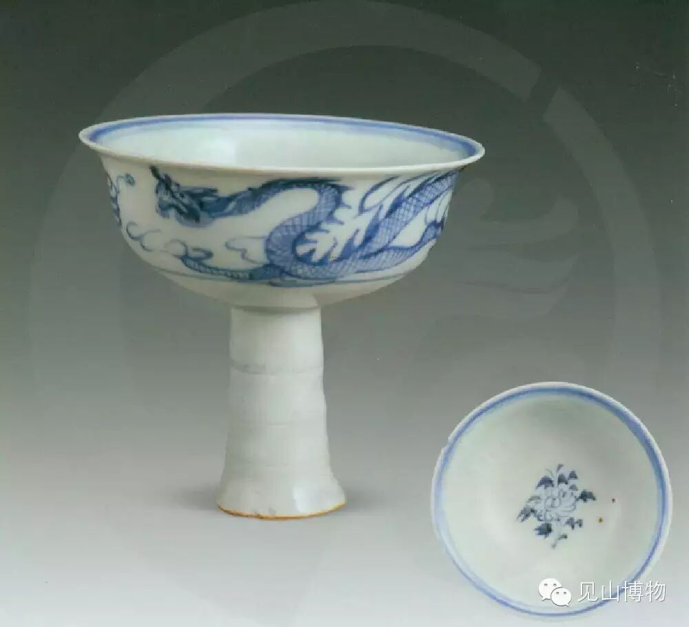 青花龙纹高足杯