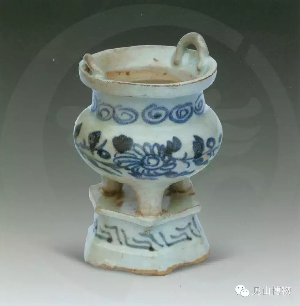 青花菊纹鼎式带座炉