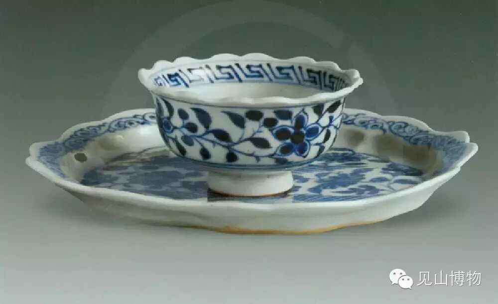 青花缠枝菊花牡丹纹托