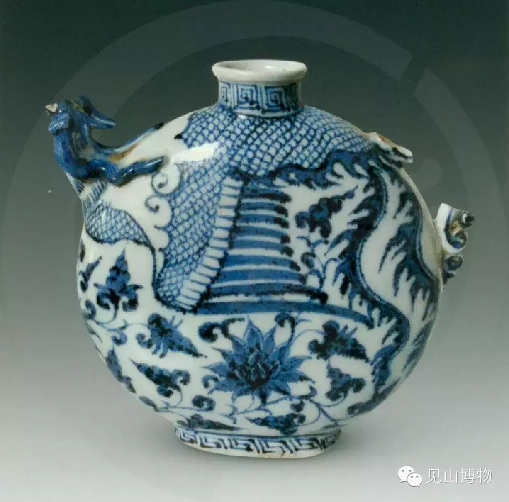 青花凤首扁壶