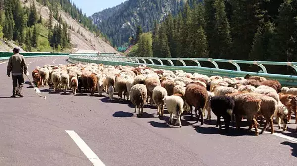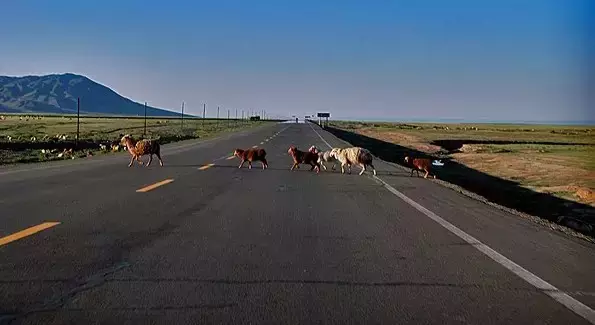赶上高速的羊群、马群、牛群,汽车也只能减速避让,构成“连霍高速一奇景”。