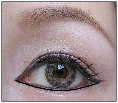 黑色眼线笔填满内膜。然后用kate极细眼线液勾出个假眼头,顺便往后拉一整条下眼线,并在眼尾斜向上拉长,和上眼线眼尾接合。
