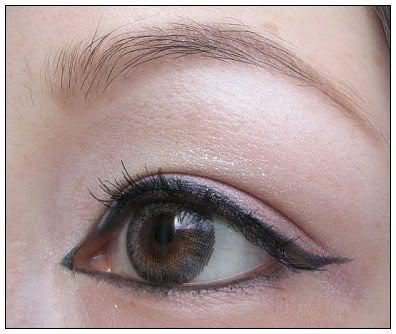 今天试用了一下,跟我的宝贝kate之流还是没的拼,显色度差远了,我反复擦了好几遍,也只是淡淡的效果,没办法,就玩了眼线,出现了今天的妖怪眼妆。