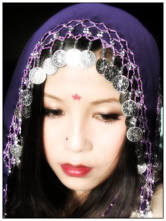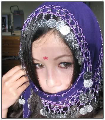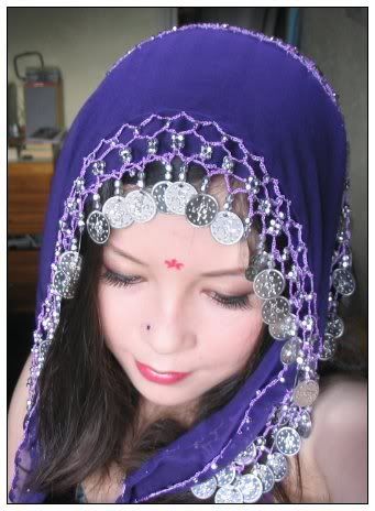 咱没莎丽,翻出土耳其带回来的肚皮舞腰带顶脑袋上了,呼呼