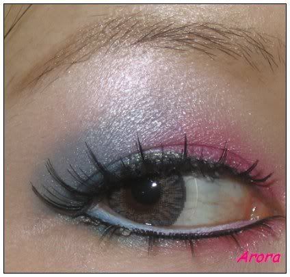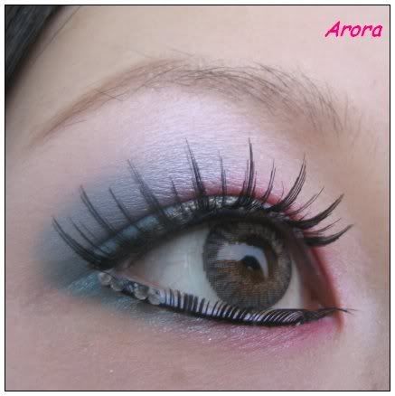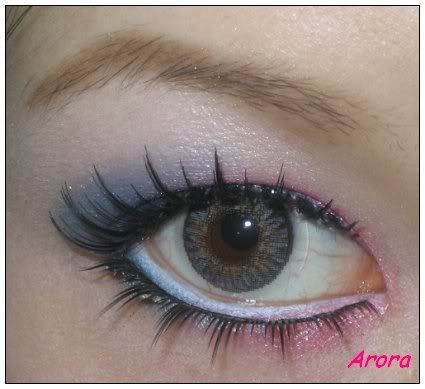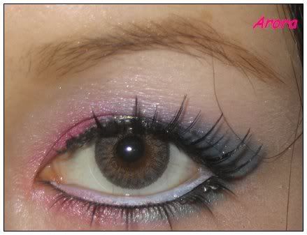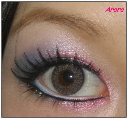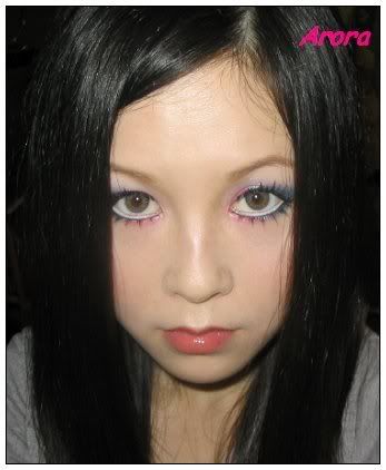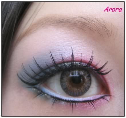 白色加粗下眼线,有很明显的放大眼睛的效果,因为可以将眼睛下边界外移。这样化的时候,假的下睫毛也是必不可少。但是有个问题,就是眼珠较小的人,千万别尝试这种画法,会愈发突出三白眼的缺陷。我眼珠还算中等的,可今天拍照的时候,仍然经常觉得自己是在翻白眼@_@