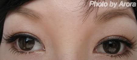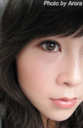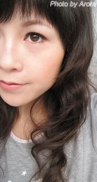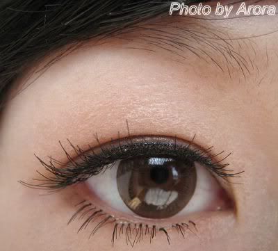 眼妆很简单,用霜状双色中的金铜色打底,galapagos涂满眼折略向上晕开。UD眼线笔化上眼线和下眼线后半,下眼线再叠上一点galapagos。下眼头用金铜色霜状眼影打亮。