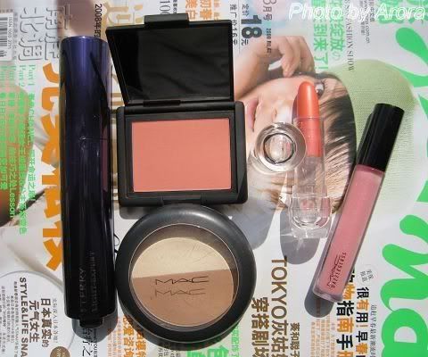 先单擦SHU的这支粉橙色唇膏,很适合夏天的唇色,带有阳光的味道。有点像无闪版的MQ#20。