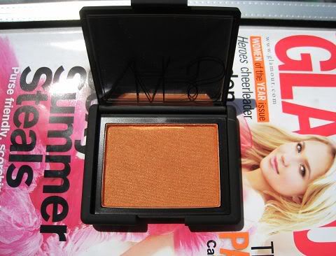 我觊觎很久的美丽正橘色腮红,终于到手!NARS的几块重色腮红,基本都是scary in pan, pretty on cheek,所以千万别被它们的表象吓到。