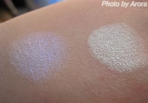 iceland,两边看起来就是很plain的白色,但其实是偏光眼影,左边是蓝紫色偏光,右边是金绿色偏光。