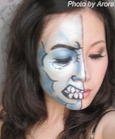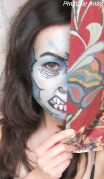 去年好像是化的花妖妆,我即使恶搞,也没勇气把自己弄得很丑(极端臭美的人哪),所以这回下了几张MAC的face